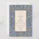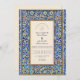 An elegant design inspired by traditional Islamic art, featuring a luxurious mosaic tile border in shades of sapphire, gold, and ivory. Perfect for a refined and meaningful Islamic wedding, this timeless piece captures the beauty of sacred geometry and cultural heritage with a touch of modern sophistication.