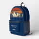 This awesome sunset over rocky mountains and forest trees in nature makes a great image for a custom blue backpack for your summer vacation or road trip through nature. Just add your own personalised text for campers or hikers who like outdoor activities.
