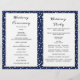 Blue mountains and conifers folded wedding program. A trendy yet elegant wedding design featuring a mountain range through conifers and your names in handwritten style. The inside includes blue and white borders with polka dots and white frames with your text.
