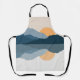 Abstract colourful illustration of sunrise with blue mountains reflected in the lake