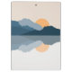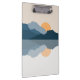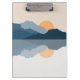 Abstract colourful illustration of sunrise with blue mountains reflected in the lake