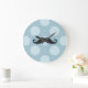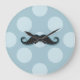 Blue Moustache, Curl Moustache, Stache, Polka Dots Large Clock