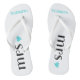 A cute addition to your destination beach or poolside wedding! Dance the night away in these comfortable bridle flip flops. White flip flops with the word "Mrs.", a aqua blue heart and the brides name personalised. To see matching groom's flip flops- Please visit my store "The Hungarican Princess" at www.zazzle.com/hungaricanprincess*. Look in my "Flip Flops" department category. Congratulations!