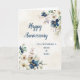 Happy wedding anniversary card for mum and dad with elegant navy blue and white watercolor flowers.