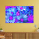 Pretty blue and magenta purple daises bouquet on this wrapped canvas print