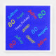 What a wonderful, personalised paper dinner napkin for an 80th birthday party or any other occasion. Name and Age repeats in different fonts and primary colours on a bright blue background. Easy to personalise - just CHANGE NAME, AGE, and OCCASION in ONE PLACE. Supports name up to 9 characters. A colourful and fun Birthday Party paper napkin. All Rights Reserved © 2014 Alan & Marcia Socolik.
