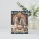 Celebrate the holidays with this blue religious Christmas postcard featuring the nativity scene.