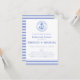 NewParkLane - Personalised Nautical Rehearsal Dinner Invitation, with a blue watercolor anchor in a circular frame, containing your names and wedding date. On the back and bottom of the invitation a navy blue striped pattern.