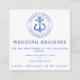 NewParkLane - Personalised Nautical Wedding Registry Information Insert Card, with a blue watercolor anchor in a circular frame, containing your names and wedding date. On the back and bottom of the invitation a navy blue striped pattern.