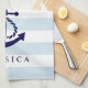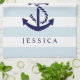 Elegant navy blue nautical boat anchor with white and light blue stripes. Custom and optional monogram.