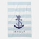 Blue nautical anchor white & light blue stripes tea towel