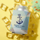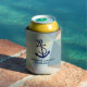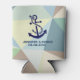 Blue Nautical Boat Anchor Modern Geometric Pattern Can Cooler