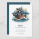 Blue Nautical Cute Fishing Racoon Birthday Party Invitation