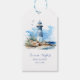 Elevate your baby shower favours with this charming watercolor lighthouse gift tag. Featuring soft coastal blues, ocean waves, and rocky shore details, it's ideal for a nautical, beach, or seaside-themed baby shower. Personalise with the parent’s name and event date for a sweet finishing touch on favour bags or party gifts.