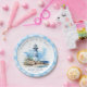 Set sail for celebration with these nautical-themed baby shower paper plates featuring a watercolor lighthouse and coastal shoreline. The soft blue plaid border and charming “Ahoy! It’s a Boy” message add the perfect ocean breeze to your tablescape. These disposable plates are ideal for serving cake, snacks, or light meals while making cleanup a breeze at your beach or sailor-themed baby shower.