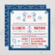 Modern nautical wedding announcement with seahorses, starfish, seashell, anchor, and fisherman's rope decorate this invitation. The back has a cute rope pattern. Customise with your own text. Great for beach, destination, summer, or any nautical celebrations. Original Illustration by pj_design.