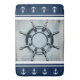 Blue Nautical Themed Bath Mat.  A unique towel set designed in rich navy adorned with ships wheel, anchors.  A bit different look than the traditional nautical decor. Towels to match.  This design is available in traditional navy, as well as red backgrounds.