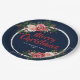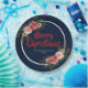 Blue Navy Blue Watercolor Flowers Christmas Paper Plate