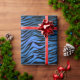 Blue Navy Cobalt Black Metallic Tiger Animal Fur Wrapping Paper