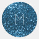 Blue Navy Glitter Metallic Minimal Monogram Classic Round Sticker