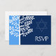 Modern light blue and navy blue Tree of Life Bar Mitzvah RSVP response card.