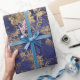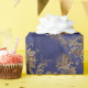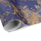Blue Navy Warm Gold Floral Grungy Shabby Chic Wrapping Paper