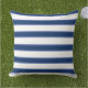 Blue Navy White Nautical Elegant Modern Stripes Outdoor Pillow