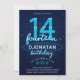 Blue Neon 14th Birthday Party Let's Glow Crazy Invitation