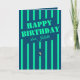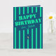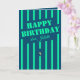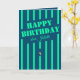 A stunning minimalistic dark blue birthday greeting card adorned with neon teal stripes and a candle. This card can be personalised with the name of the birthday celebrant.