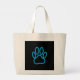 A blue neon dog paw print. Original design. Custom tote bags. Gift idea for dog lovers of all ages.