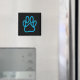 Custom fridge magnet with a blue neon dog paw print. Cartoon design.