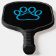 A blue neon dog paw print. Original design. Custom pickleball paddles.