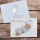 Baby birth announcement with periwinkle blue background and twinkling stars, This design features a baby birth announcement card, perfect for newborn photos, with a simple blue background with an overlay text, and a cute nursery rhyme theme, with moon and stars, new parents will love this minimalist, cow jumped over the moon, whimsical theme.
