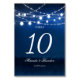 Blue Night and Silver String Lights Wedding Table Number