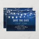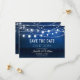 Blue Night & Silver String Lights Rustic Wedding Save The Date