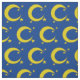 Fabric features an original marker illustration of a yellow moon and stars on a blue night sky background.
