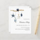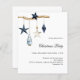 For a Christmas party with family and friends. An elegant white background. Decorated with nordic, scandi style Christmas decor, a wood brach, blue and white stars and a blue gnome. Personalise and add the details.