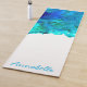 Blue ocean watercolor art design yoga mat with original art illustration of beautiful colourful blue ocean with personal name. Original, vibrant design to bring joy to your yoga practice.