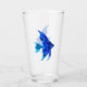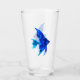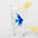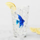a decorative design of little blue colored fish on a drinking glass. cool design for aquarium owners and oceans fans.