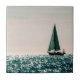 A sailboat on a beautiful blue green sea sails into the horizon on this accent ceramic wall tile. From an original photo taken in Turkish waters by Sun Hobo.
