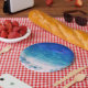Blue ocean sea beach paper plates.
