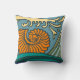 Blue Ocean Waves Nautilus Seashell Pattern Nouveau Cushion