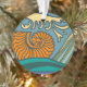 Blue Ocean Waves Nautilus Seashell Pattern Nouveau Ornament