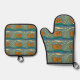 Blue Ocean Waves Nautilus Seashell Pattern Nouveau Oven Mitt & Pot Holder Set