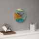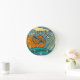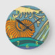 Blue Ocean Waves Nautilus Seashell Pattern Nouveau Round Clock