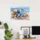 Make a bold coastal statement with this Blue Octopus Seashell Art Print from the Nautical Blue collection by TinkPrints. A detailed blue octopus with pearly accents, seashells, and soft shoreline waves creates an eye catching focal point for beach house living rooms, coastal bedrooms, and nautical themed spaces. Designed to coordinate with the Nautical Blue palette, this artwork pairs easily with matching collection pieces like wall art, coasters, mugs, kitchen towels, labels, and note cards for a cohesive blue and white coastal look.