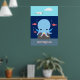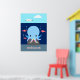 Cute blue octopus with three orange fish and a seagull flying overhead. Says "octopus" but you can change the wording.