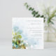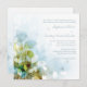 This 5.25x5.25 square stylish vintage chic wedding invite has a soft faded blue background with some birds flying around. On the left, there is a beautiful soft blue, white, and olive green foliage leaves design. At the top right, you can easily customise this with your wedding ceremony information. These warm colours would be great for a fall or winter wedding, but could be used anytime of the year!