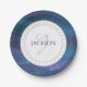 Blue Ombre Abstract | Teal Violet Purple Monogram Paper Plate