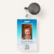 Modern mermaid blue ombre glitter white marble logo employee photo pass, add your photo, name, title, company logo.